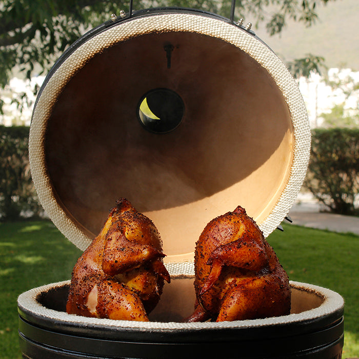 Te permiten cocinar tanto a fuego directo como indirecto por espacios de tiempo muy prolongados. La suma de estas características nos da un mundo de posibilidades para cocinar a diferencia de los asadores convencionales.