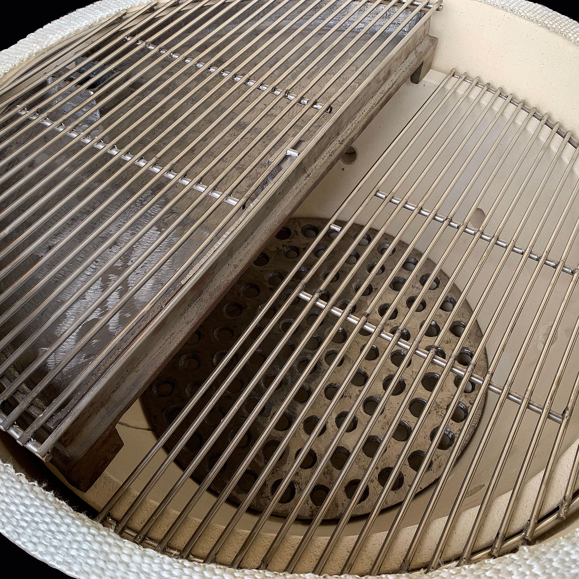 El deflector de calor está hecho de fierro vaciado. Nos permite cocinar a fuego indirecto. Incluye la herramienta para colocarlo sobre el contenedor de carbón (sin anillo).